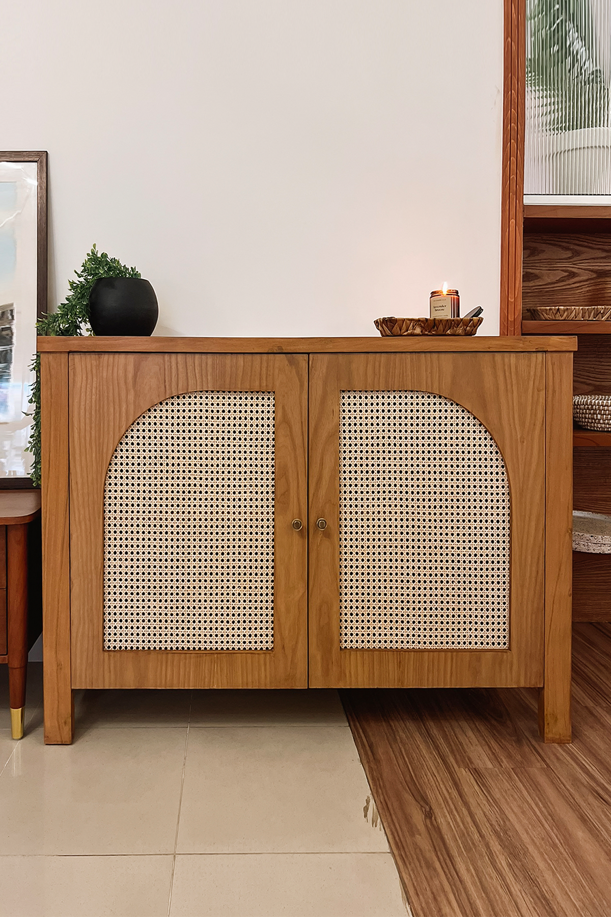Perfect for entryways, living rooms, or dining spaces, the Arka Cane Cabinet adds warmth and character to your home while keeping it effortlessly organized.